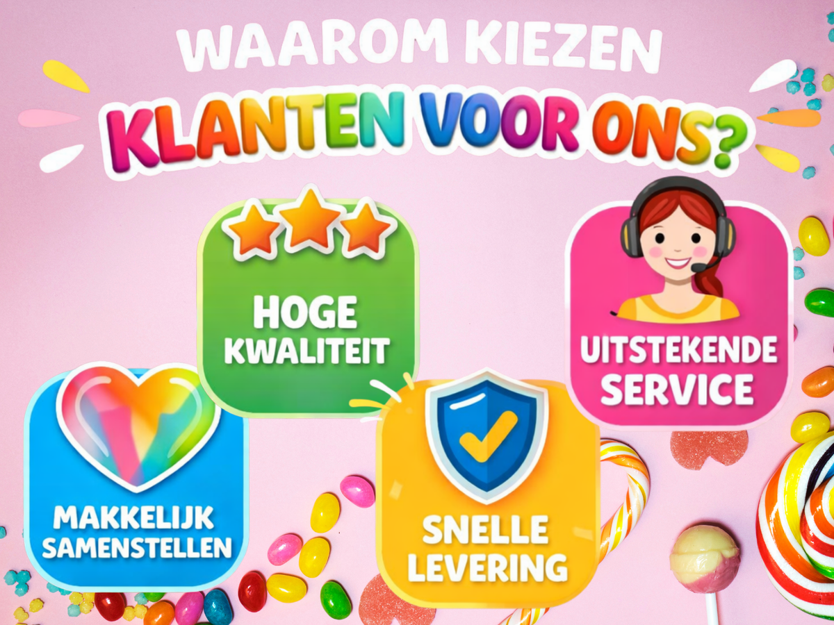 Altijd vers snoep, snelle levering en de beste kwaliteit. Dat proef je bij elke hap.